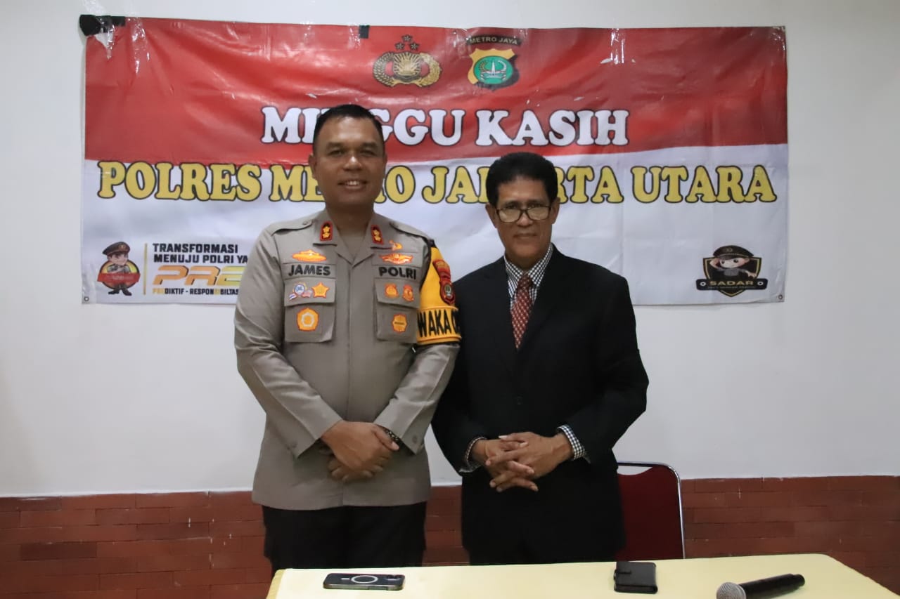 WARTAPOLRI.COM, JAKARTA – Polres Metro Jakarta Utara melaksanakan program Minggu Kasih di Gereja GPSI Soteria, Jalan Gembira Terusan, Kelurahan Sungai Bambu, Tanjung Priok, pada Minggu (21/9/2025). Kegiatan ini dipimpin langsung oleh Wakapolres Metro Jakarta Utara, AKBP James H. Hutajulu, S.I.K., S.H., M.H., M.I.K., dan dihadiri jajaran Polres serta Polsek Tanjung Priok bersama pengurus gereja.
