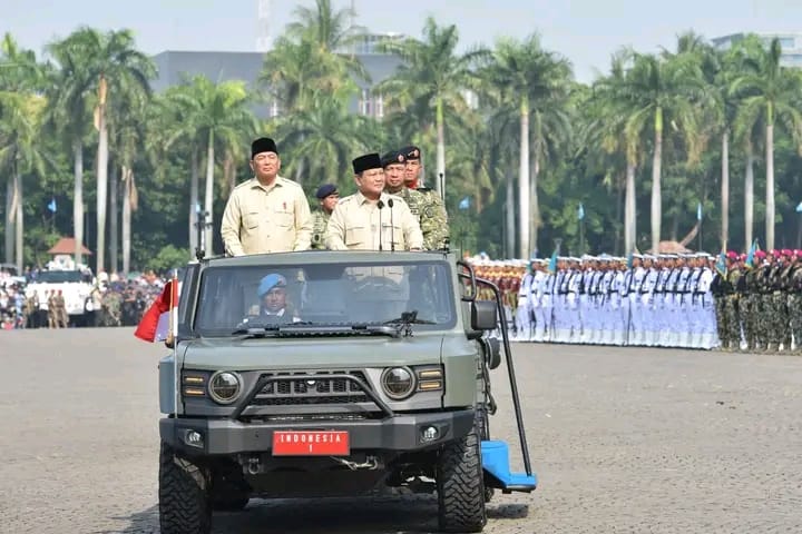 Setelah laporan Komandan Upacara, Presiden Prabowo bersama Menteri Pertahanan Sjafrie Sjamsoeddin dan Panglima TNI Jenderal TNI Agus Subiyanto melaksanakan pemeriksaan pasukan menggunakan kendaraan taktis Maung buatan dalam negeri, menegaskan komitmen pemerintah terhadap kemandirian industri pertahanan nasional. Selanjutnya, Inspektur Upacara memimpin penghormatan dan mengheningkan cipta untuk mengenang jasa para pahlawan bangsa.