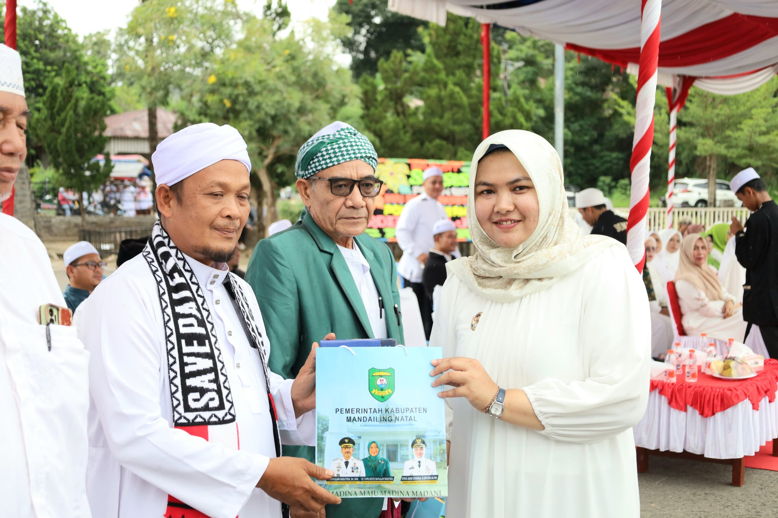 Dalam kesempatan ini, Pemkab Madina juga menyerahkan bingkisan kepada para pimpinan pondok pesantren serta piagam penghargaan bagi juara Musabaqah Qiraatul Kutub Nasional (MQKN) dan para juara Seleksi Tilawatil Quran dan Hadis (STQH) ke-19 Sumut.