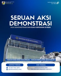 “Tidak hanya itu, kami juga telah menyusun laporan pengaduan dalam bentuk policy brief yang dilengkapi berbagai bukti pendukung. Dokumen tersebut akan kami serahkan langsung kepada Badan Gizi Nasional saat aksi berlangsung untuk ditindaklanjuti,” papar Entis.