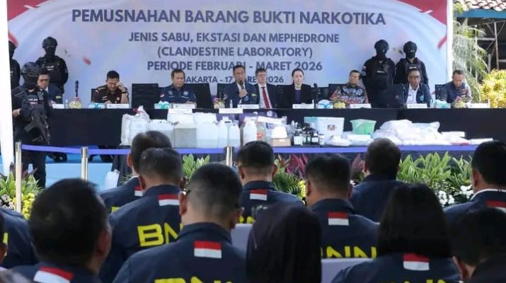 WARTAPOLRI.COM,JAKARTA — Badan Narkotika Nasional (BNN) menggelar pemusnahan barang bukti hasil tindak pidana narkotika di Lapangan Parkir BNN, Cawang, Jakarta Timur, Selasa (17/3). Total